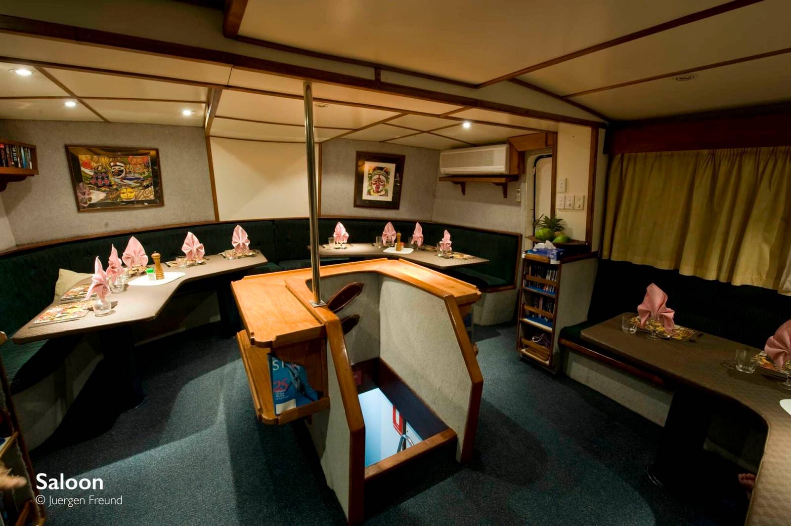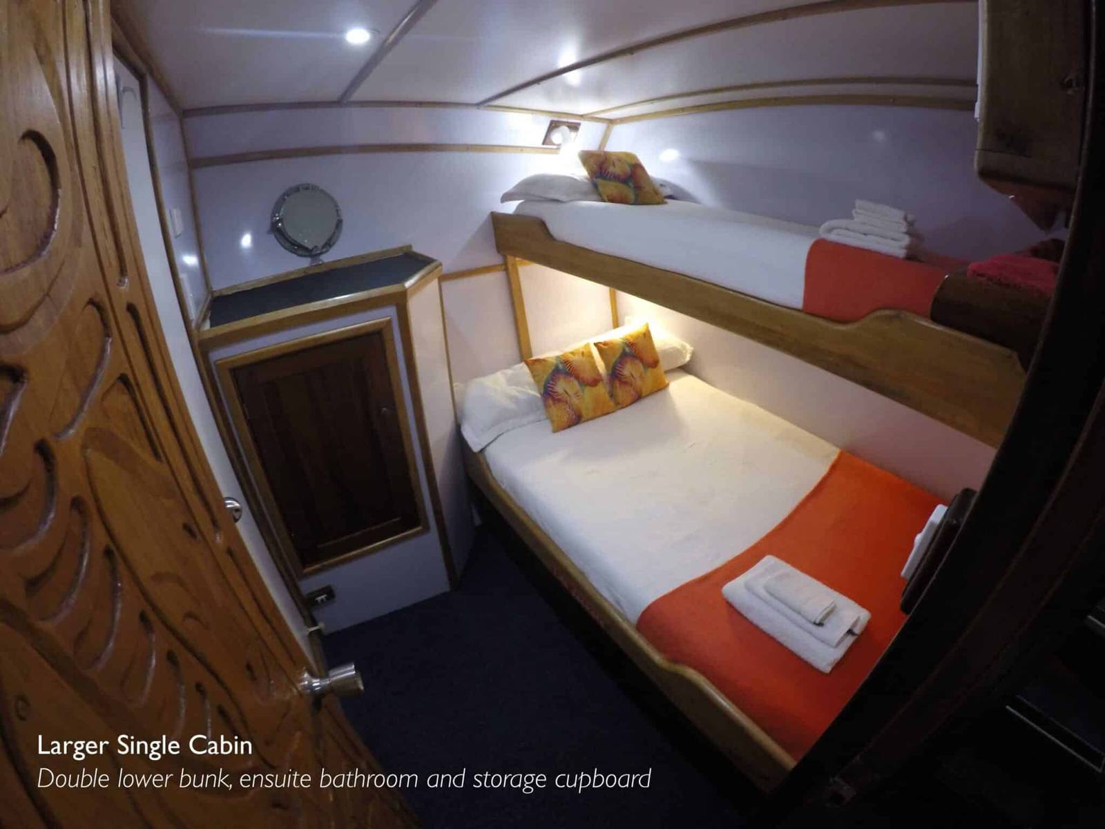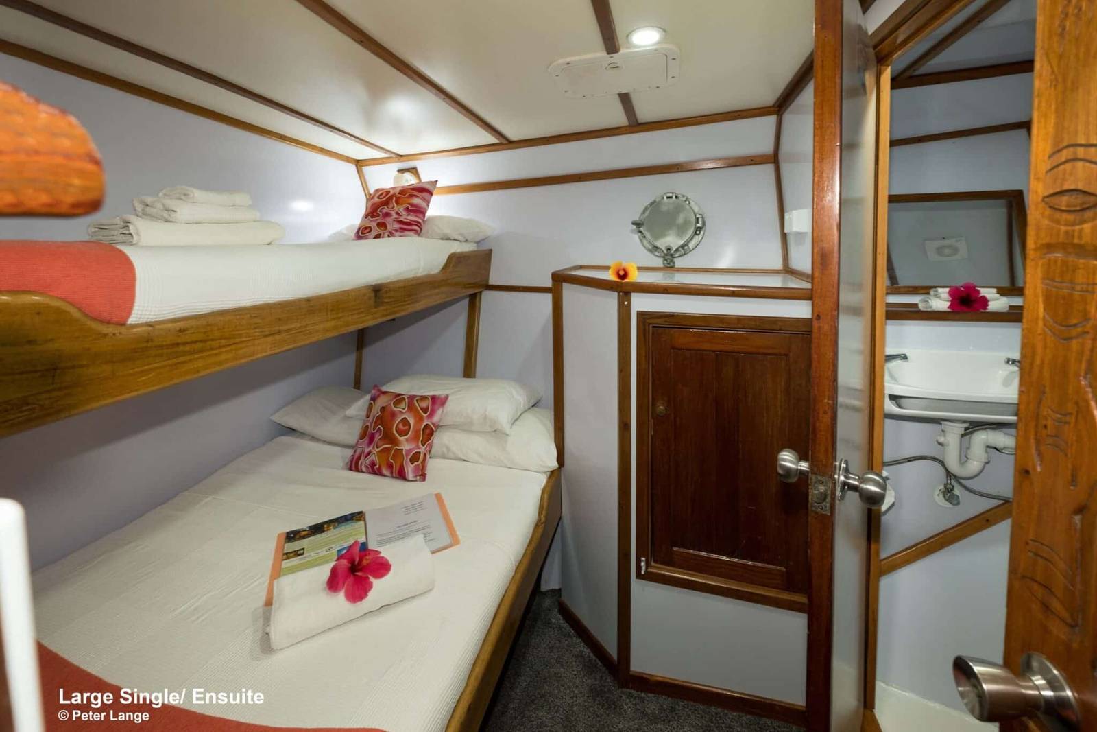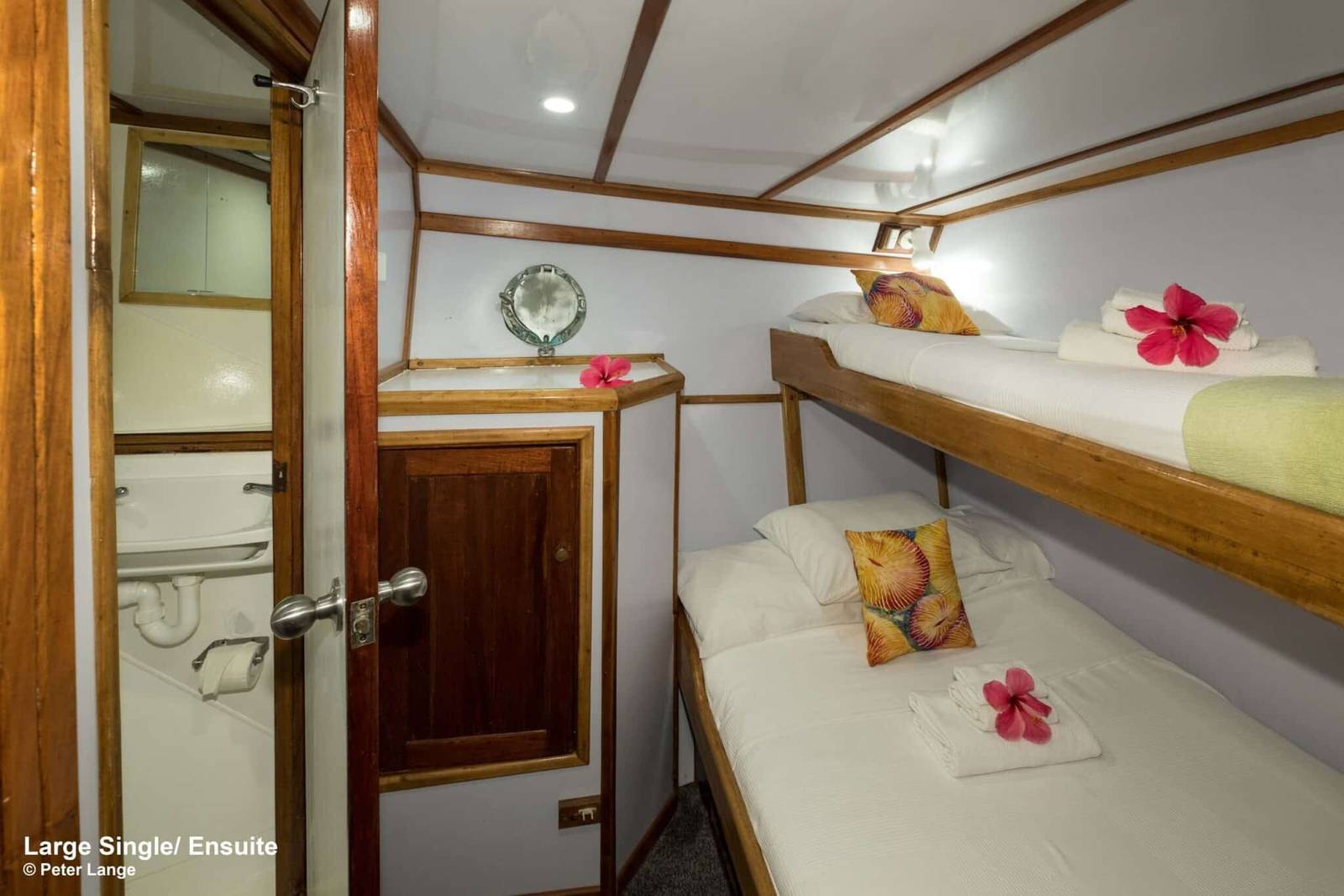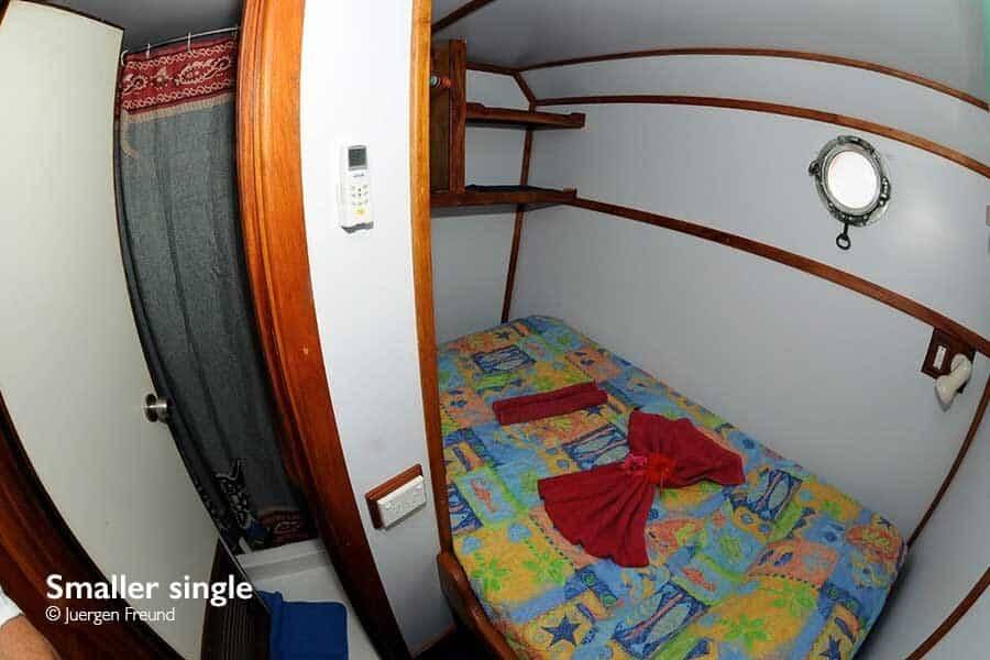 With only 7 cabins available, the FeBrina is an intimate affair and gives a real sense of exploring the seas. All cabins are perfectly comfortable with a ensuite bathroom offering hot showers at all times of the day. Cabins are twin or double and there is ample space for stoing bags and dive gear. The all cabins have AC, which can be a welcome relief in this hot climate. Amazingly, the crew offers to do laundry daily even on the longer trips of 10 days.